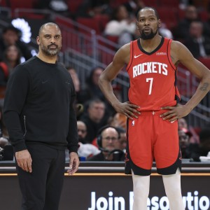 1月24日讯 NBA常规赛,火箭111-104力克活塞。本场比赛火箭背靠背作战,杜兰特出战40分40秒,19投11中,三...